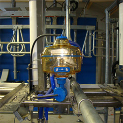 In de melkmeter bevinden zich geen stroomvoerende delen de melk wordt per 0.1 liter geregistreerd door middel van een keepbakje die langs een sensor beweegt.