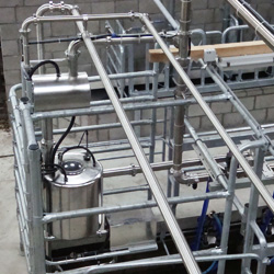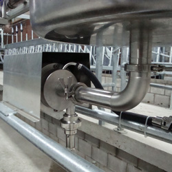 Klesan heeft een ruime keuze in melkontvangsten 45 ltr., 70 ltr., 110 ltr en 140 ltr. Alle melkontvangsten zijn van roestvrijstaal voor de duurzaamheid en hebben boven in het melkontvangst een doorzichtige inspectie deksel. Aan de bovenzijde in het melkontvangst zijn drie spoelnippels aan gebracht om de boven zijde van het melkontvangst goed te kunnen reinigen.Het melkontvangst met roestvrijstalen overloopbeveiliger en melkpomp worden op een gegalvaniseerd fram gemonteerd voor in de melkput. De melkpomp wordt aangestuurd door een vlotter niveau regeling zo verkom je dat er spanning voerende delen zich in de melk bevinden.