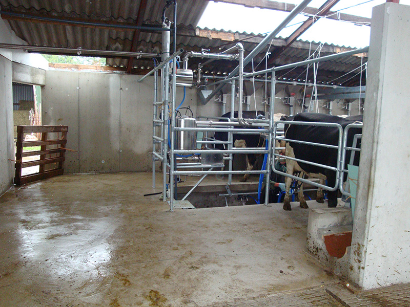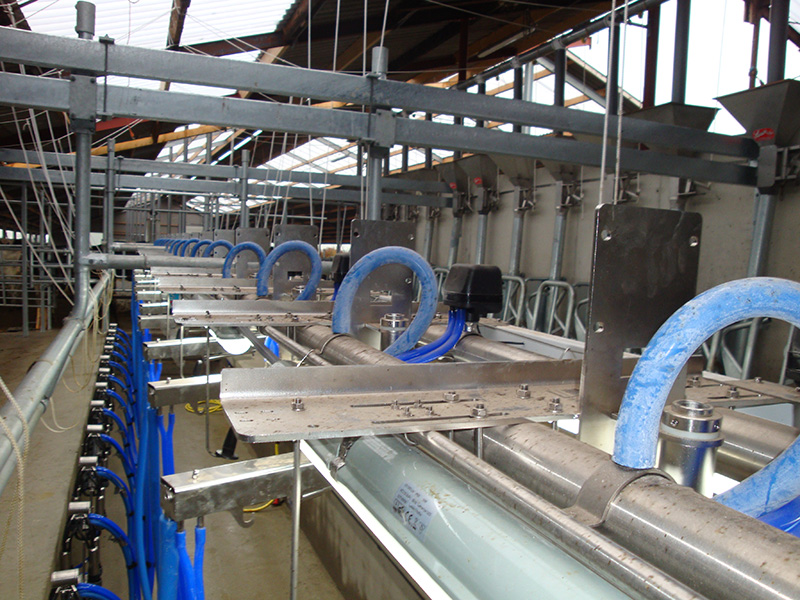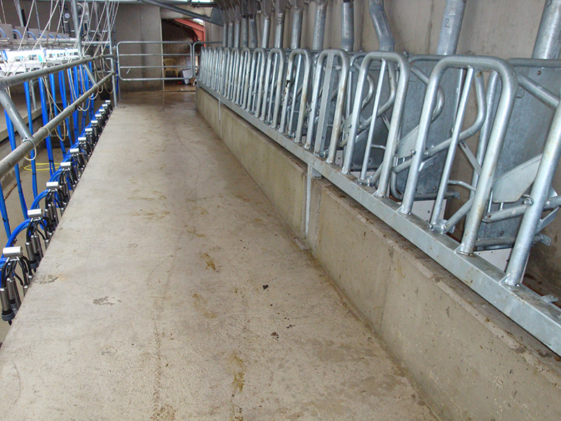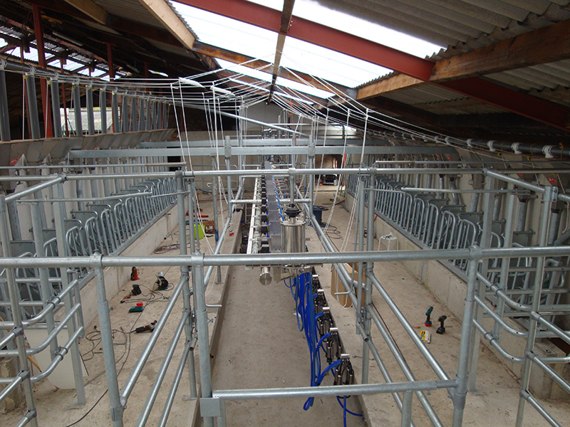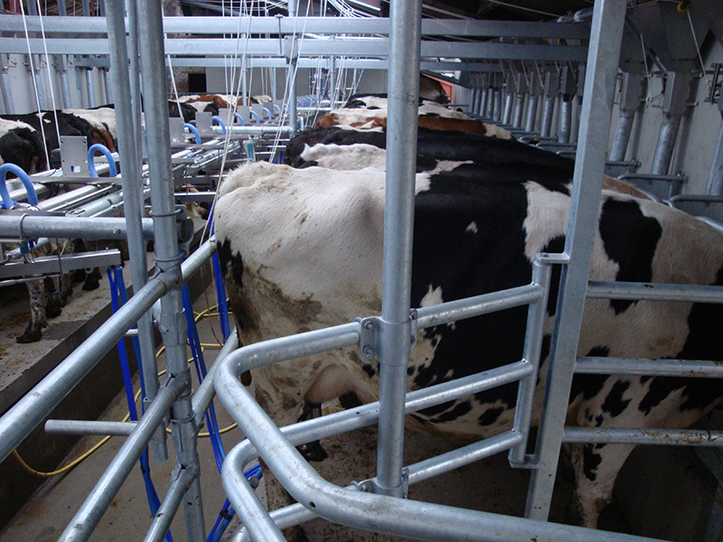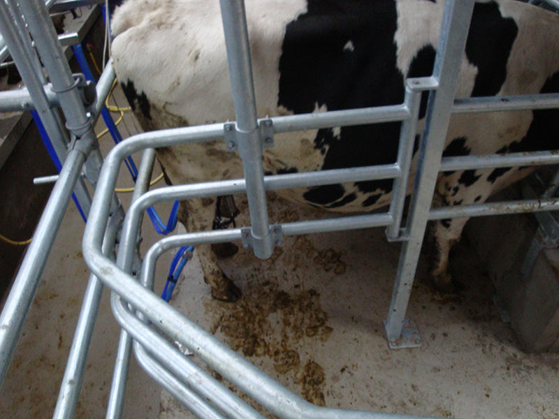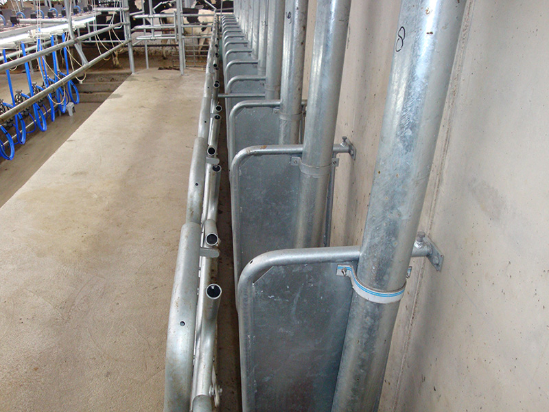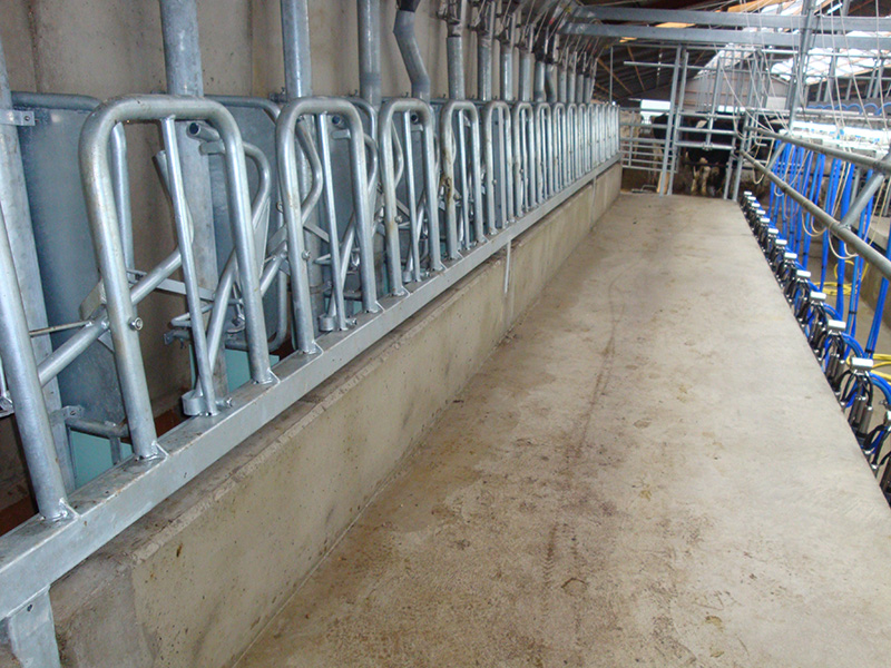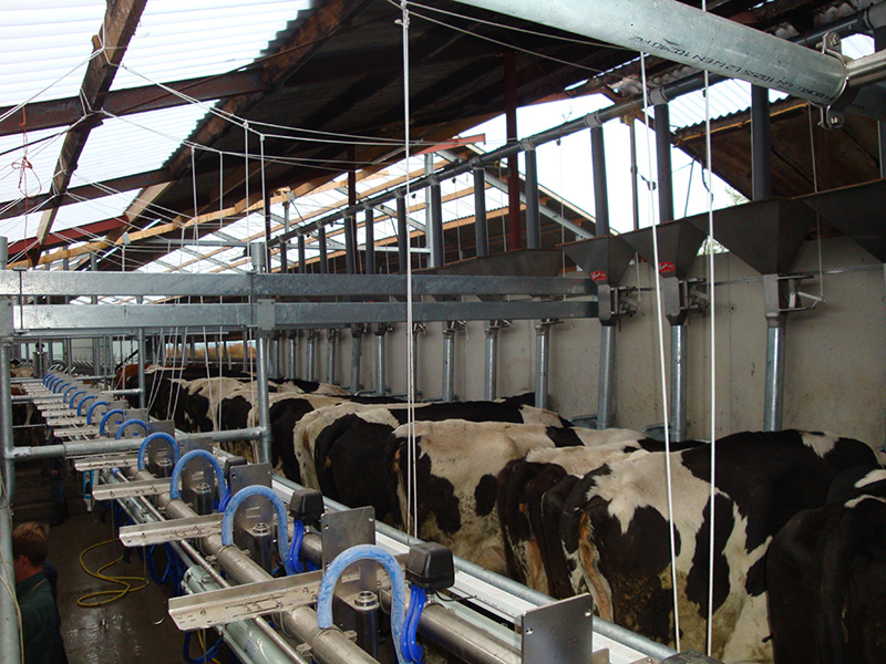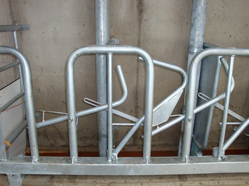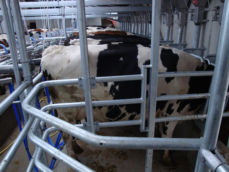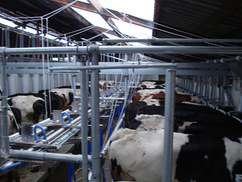 16 Stands melkstal, zelfsluitend melkstalvoerhek 90°.