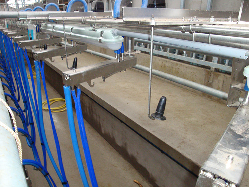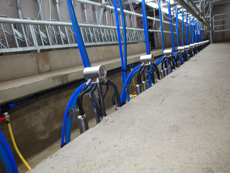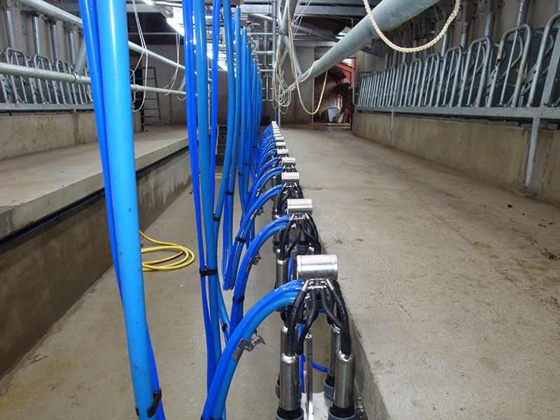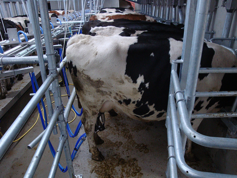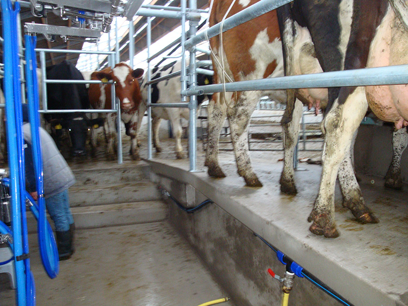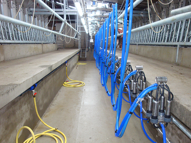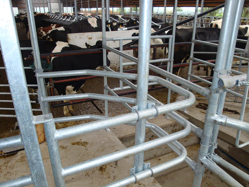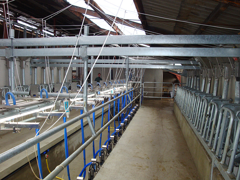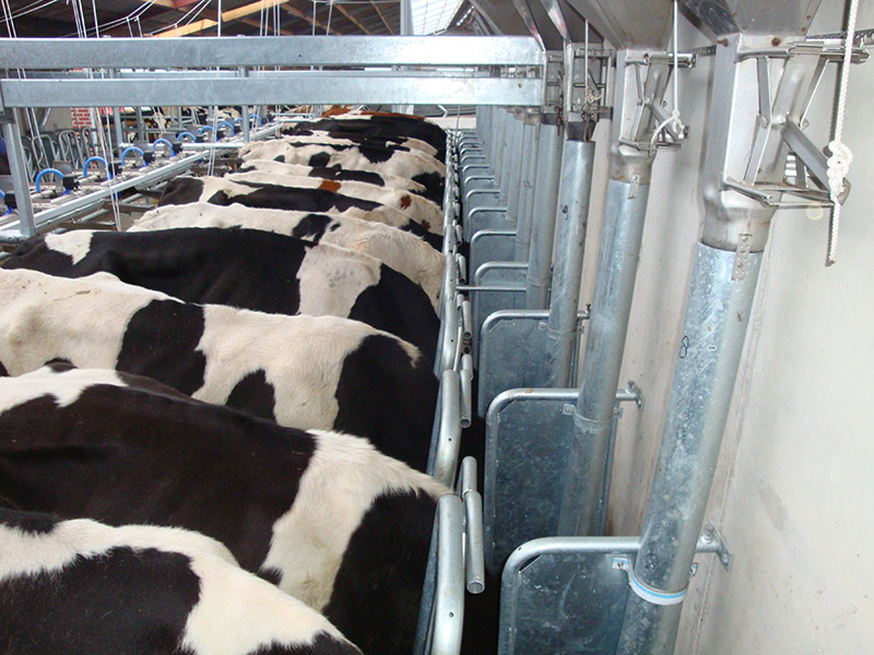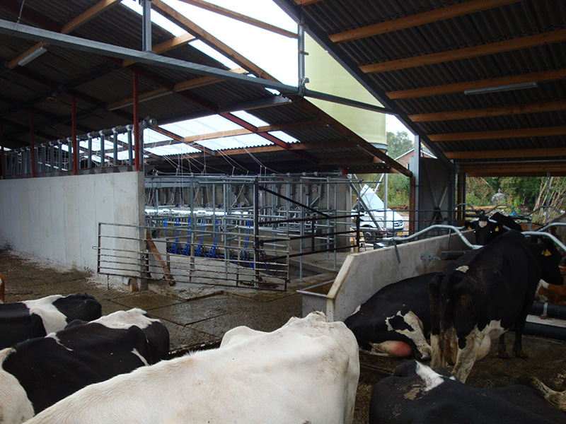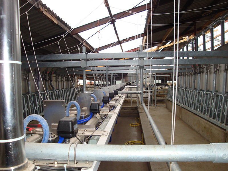 16 Stands melkstal, zelfsluitend melkstalvoerhek 90°.