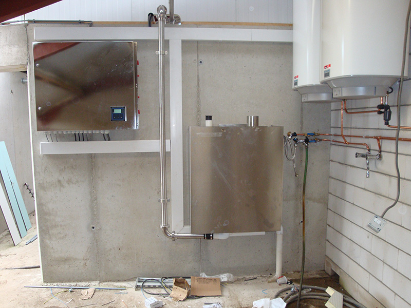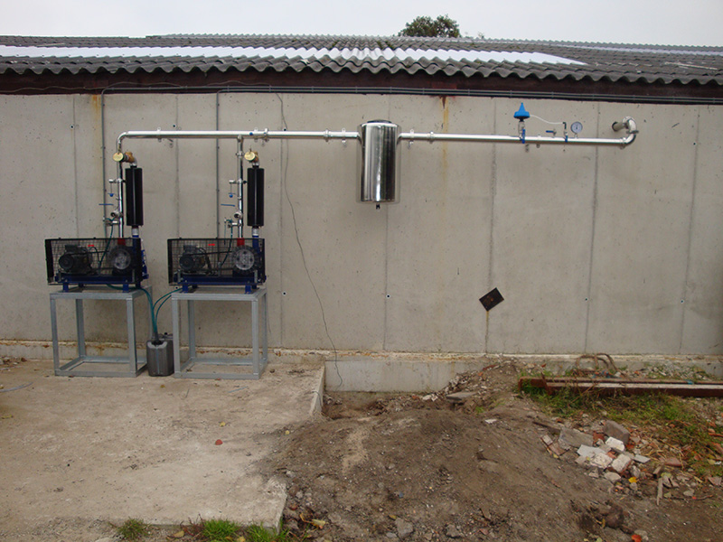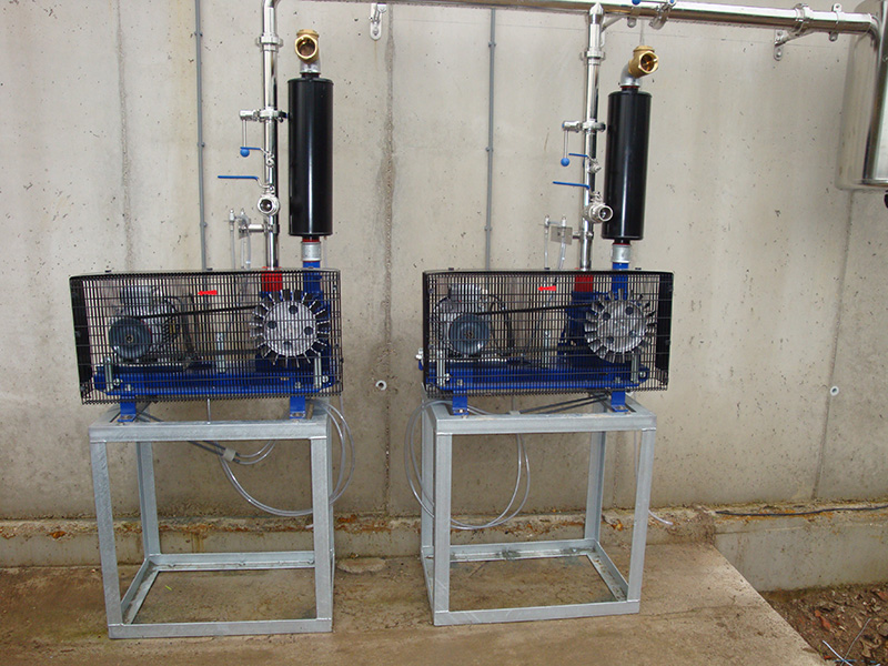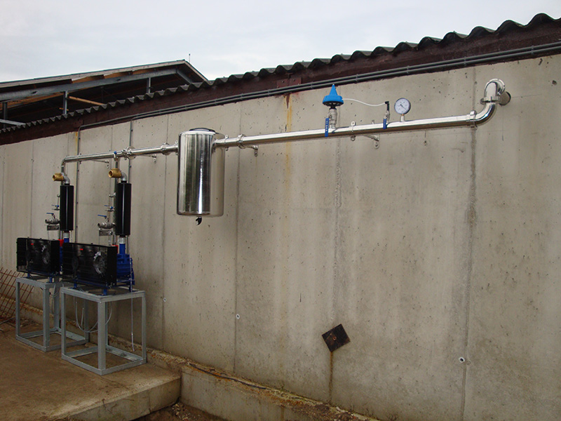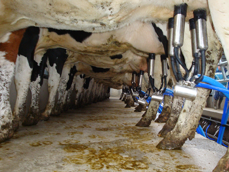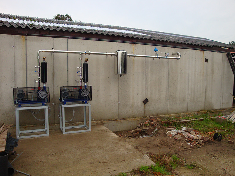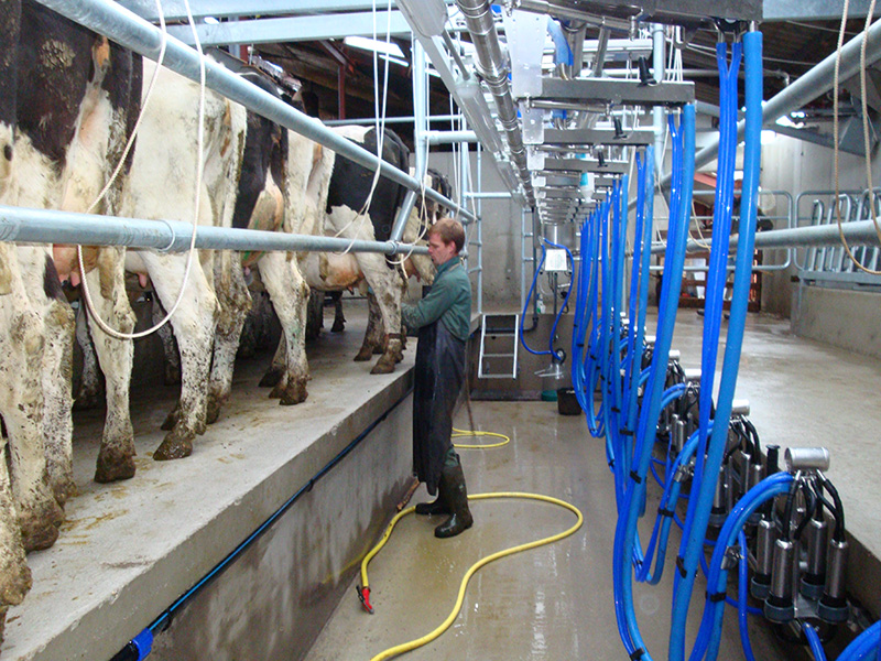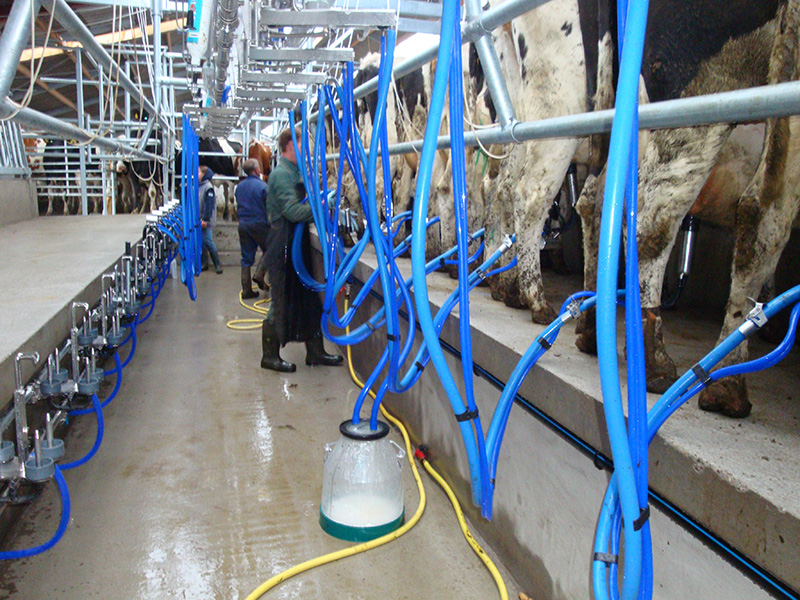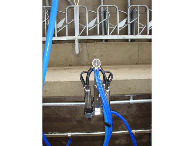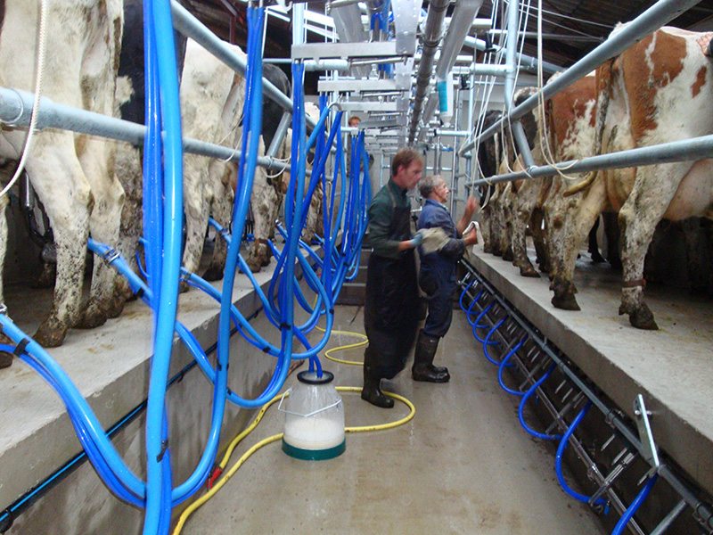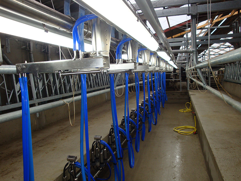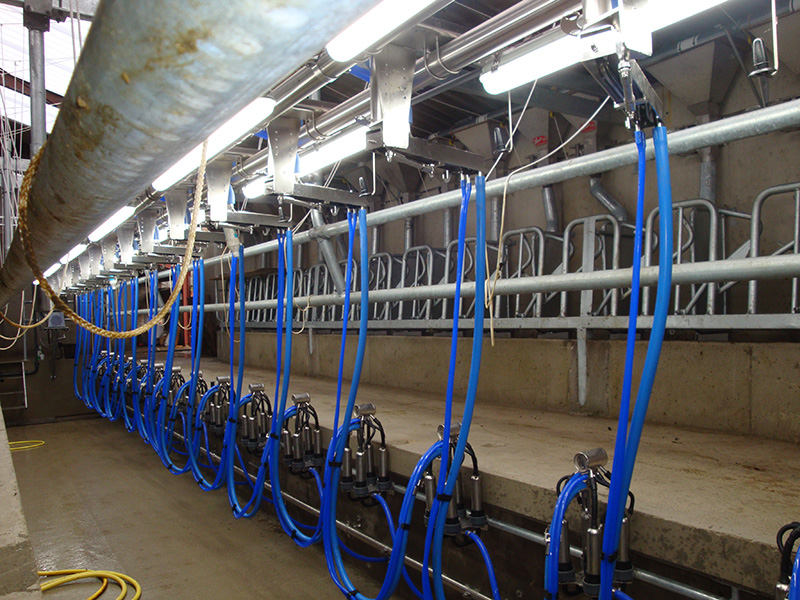 16 Stands melkstal, zelfsluitend melkstalvoerhek 90°.