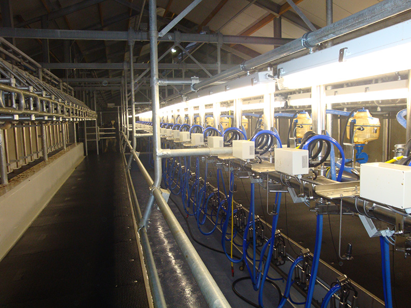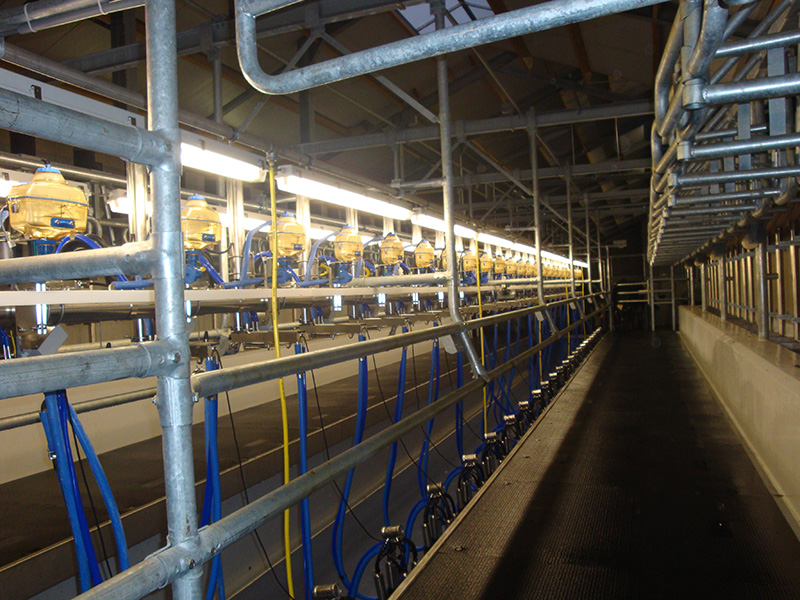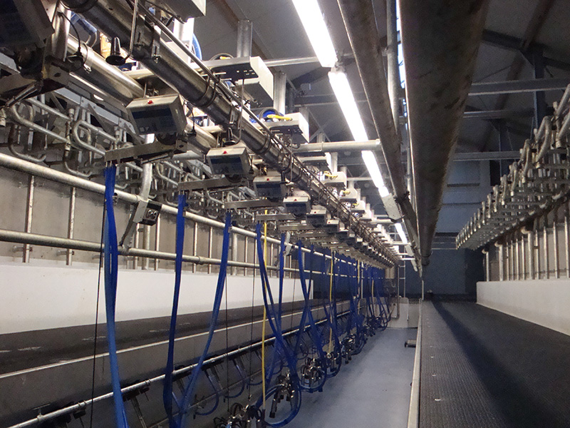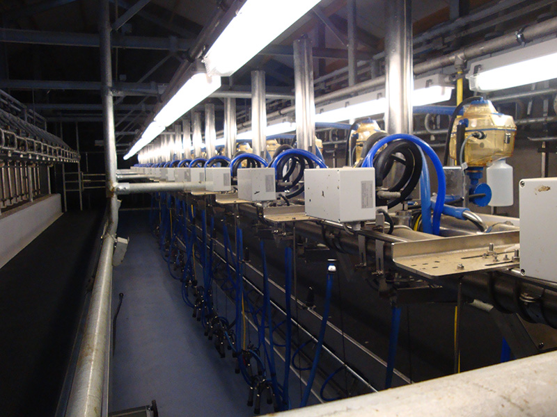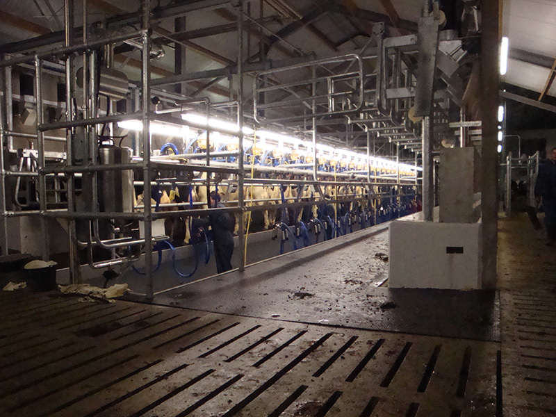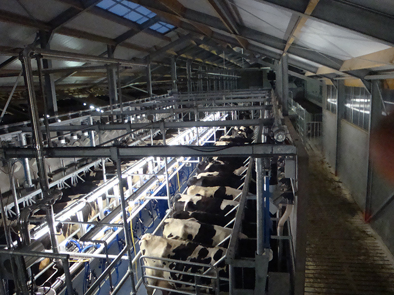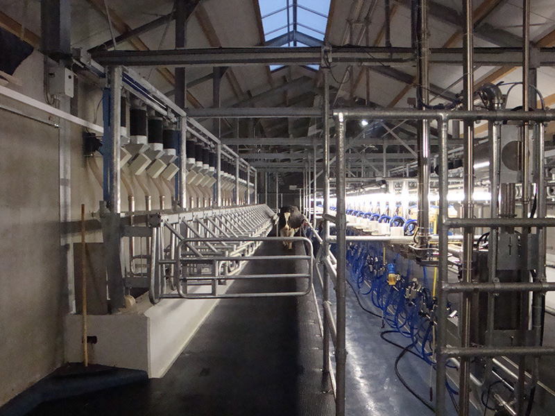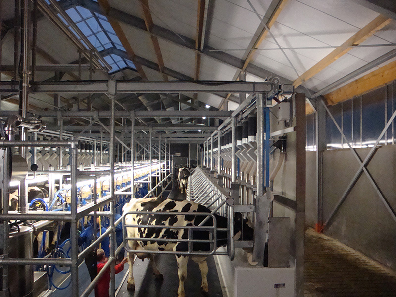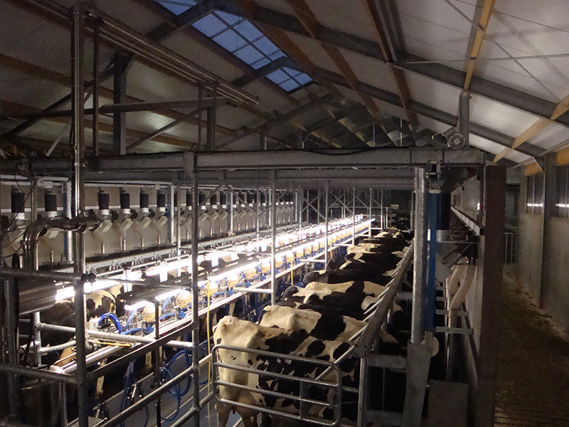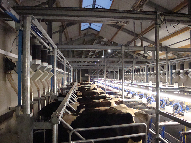 24 Stands fast exit 80° melkstal met geprogrammeerd voeren, pulsameter2 ICAR melkmeters, koeherkenning, twee weg selectiebox en een platenkoeler.