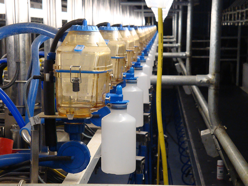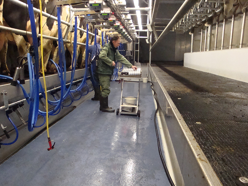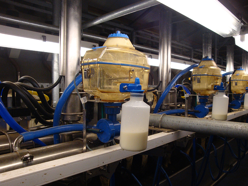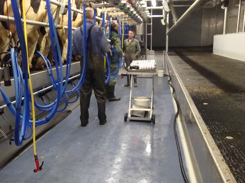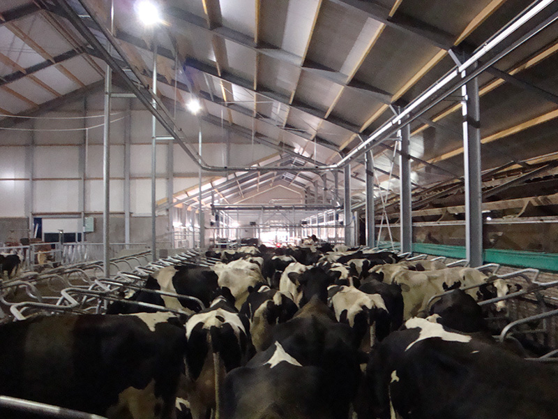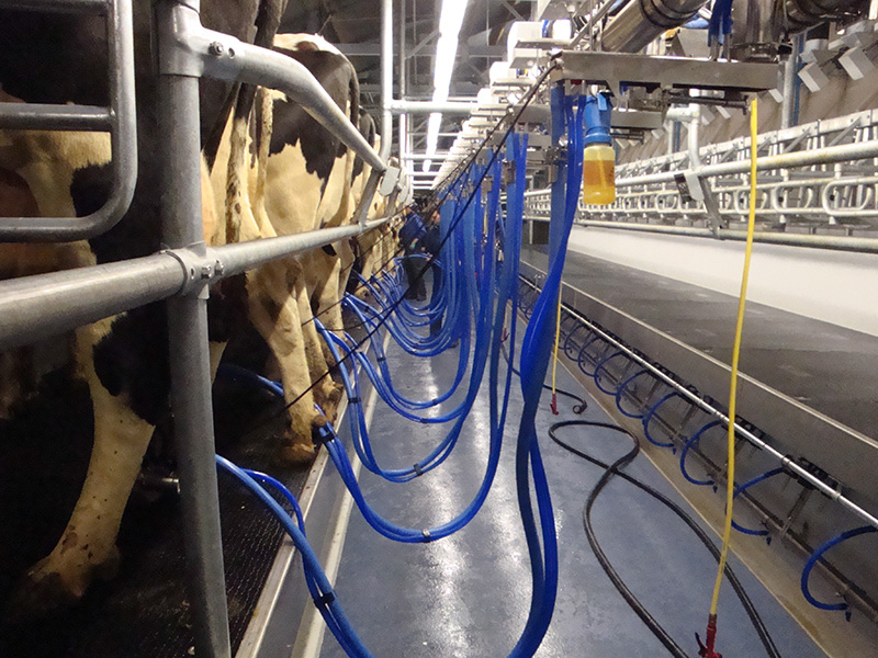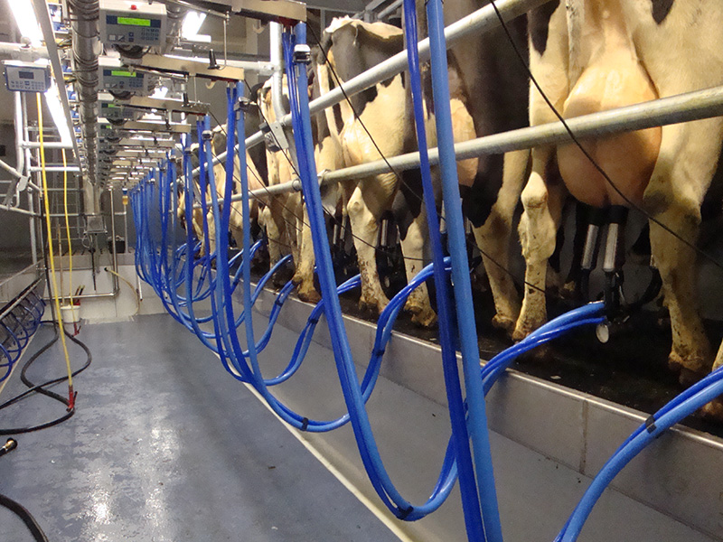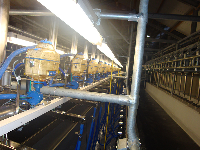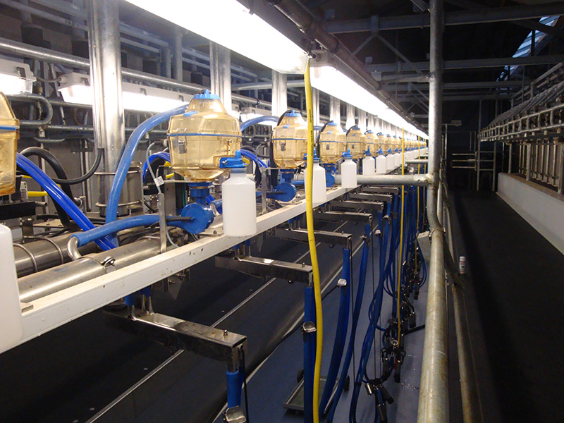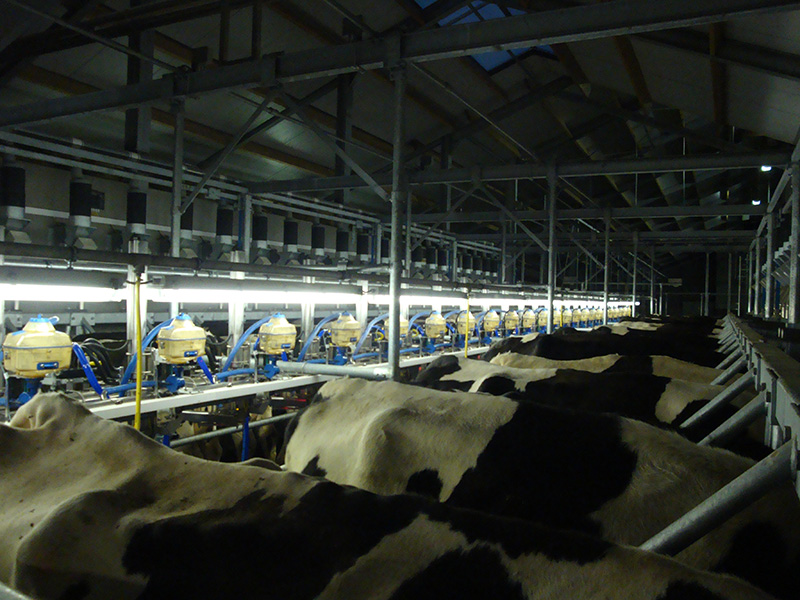 24 Stands fast exit 80° melkstal met geprogrammeerd voeren, pulsameter2 ICAR melkmeters, koeherkenning, twee weg selectiebox en een platenkoeler.